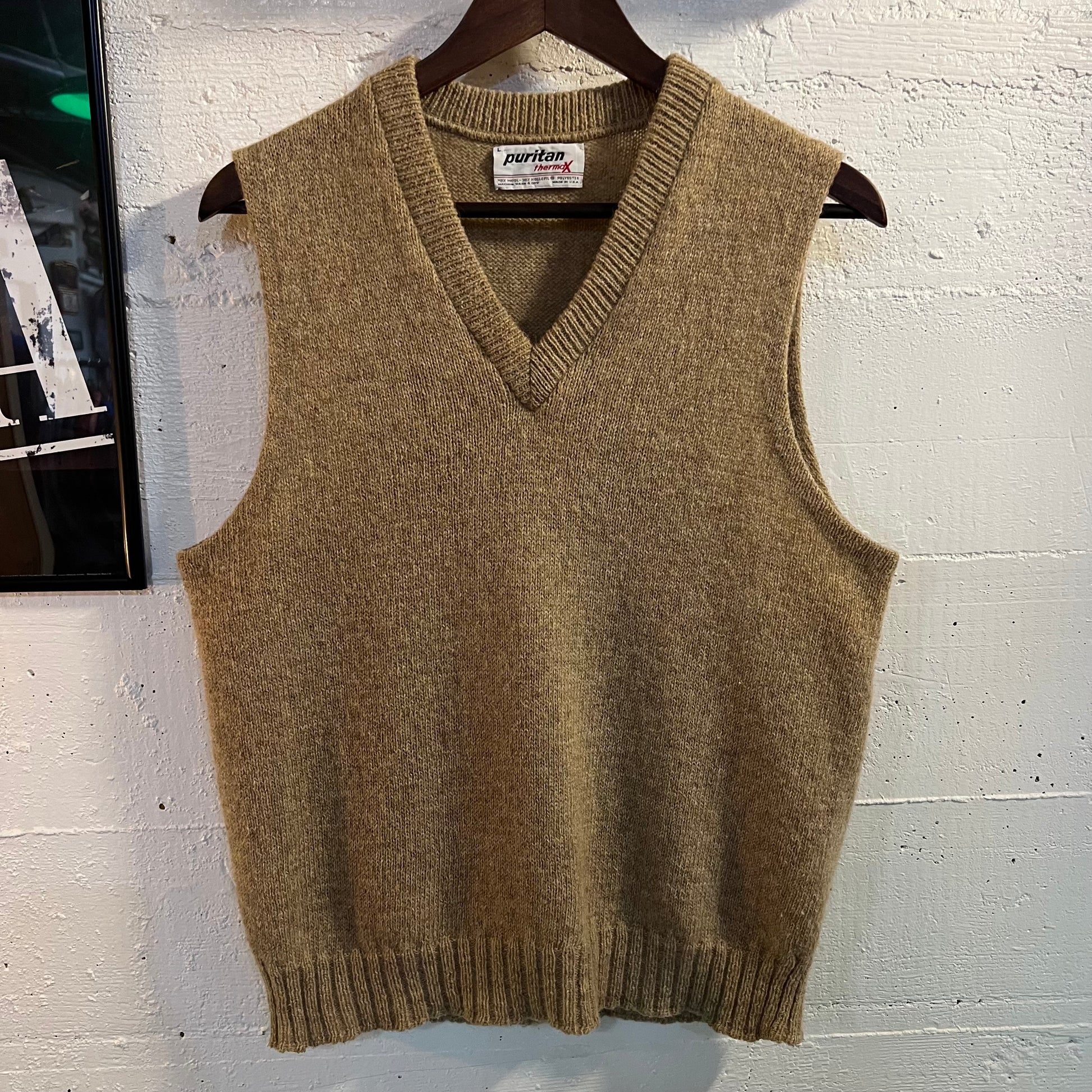 Vintage 80’s Puritan Thermax Knit Wool Blend Sweater Vest - Size Large - Made In USA - Tan