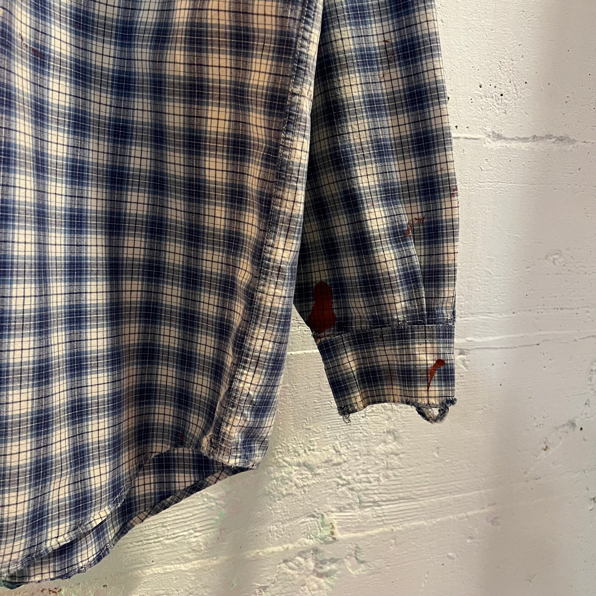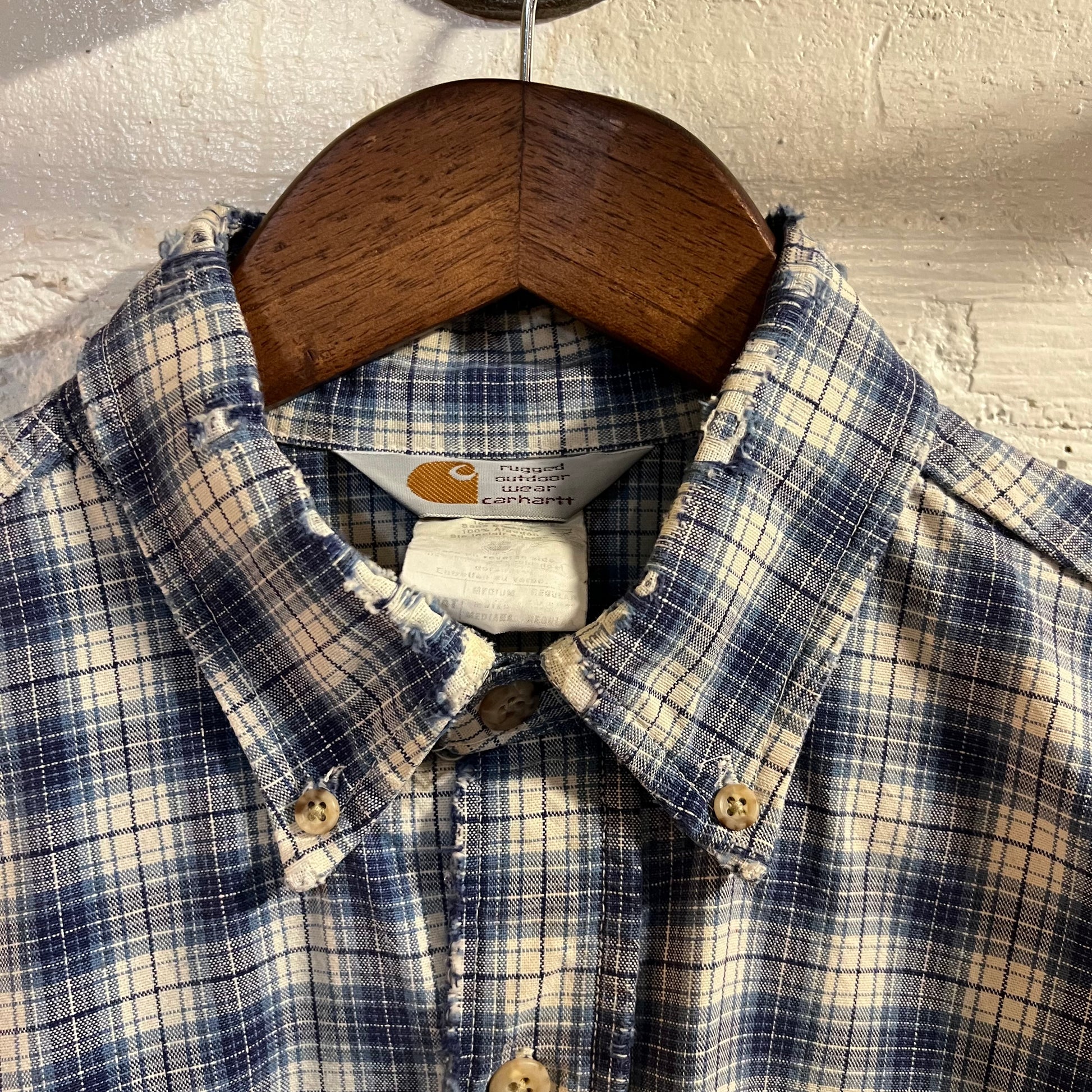 Vintage 90's Distressed Carhartt Painters Shadow Plaid Button Down Shirt - Size Medium - Union Made In USA - Blue/White