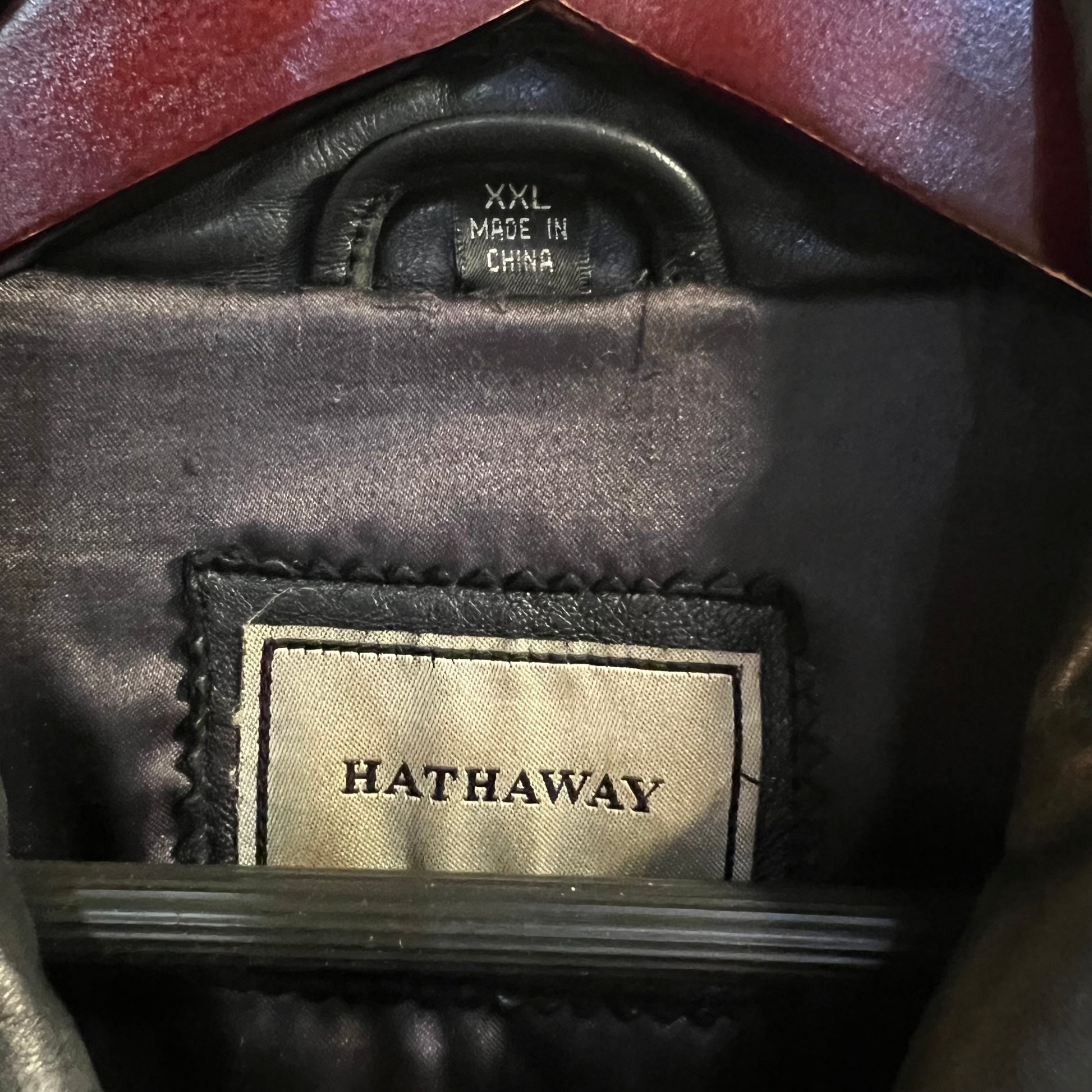 Vintage 90's Hathaway Black Leather Full Zip Bomber Jacket - Size XXL - 100% Leather
