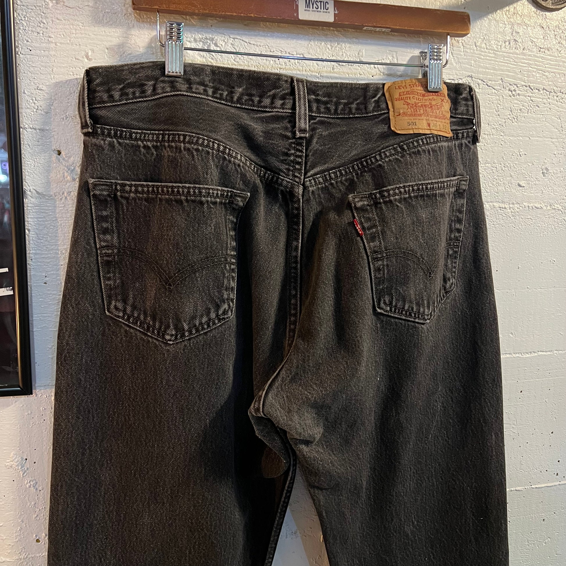 Vintage 90's Levi's 501 Button Fly Faded Black Denim Jean - Tag Size 36" x 32" - Made In USA