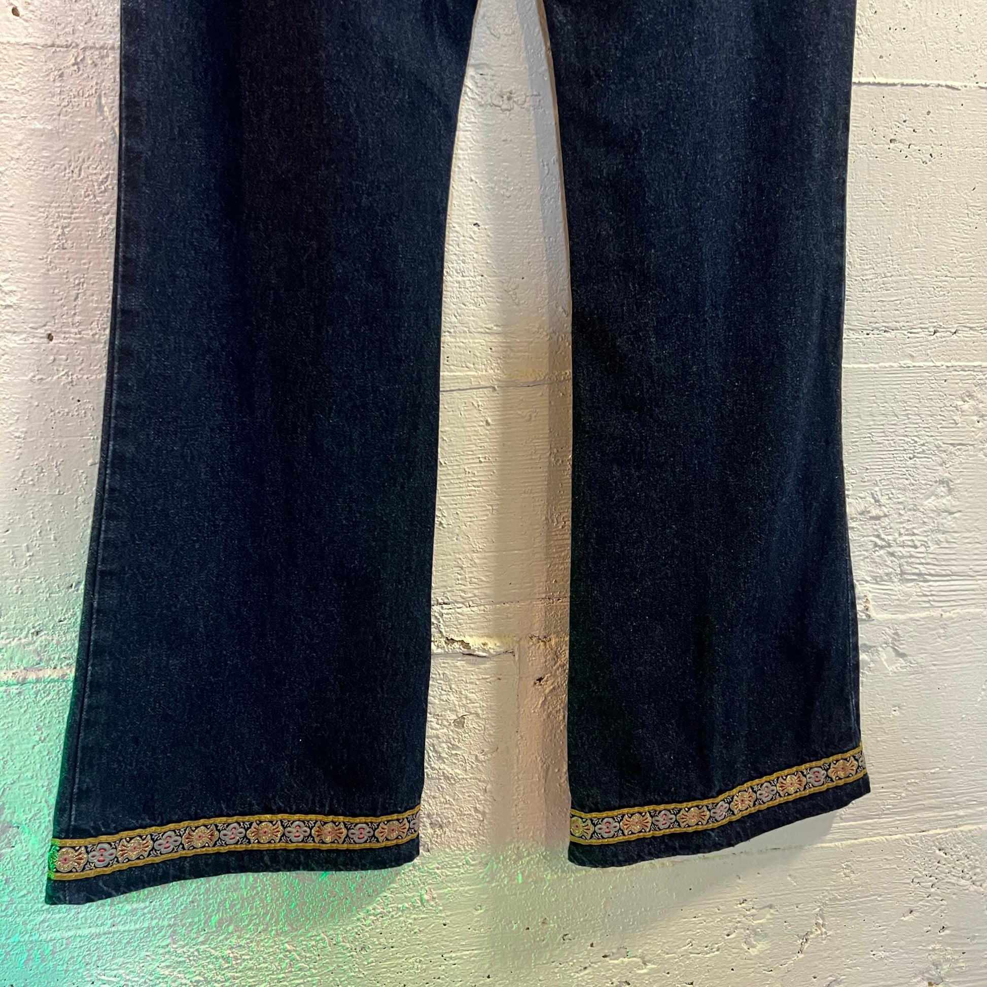 Vintage 90's Paris Blues Dark Blue Indigo Flared Denim Applique Jeans