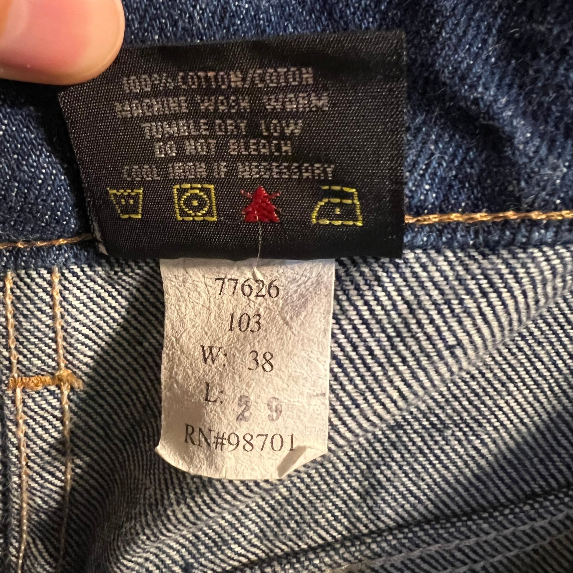 Vintage 90's Prison Blues Raw Denim Relaxed Fit Jean - Size 38" x 29" - Made In USA - Dark Raw Indigo