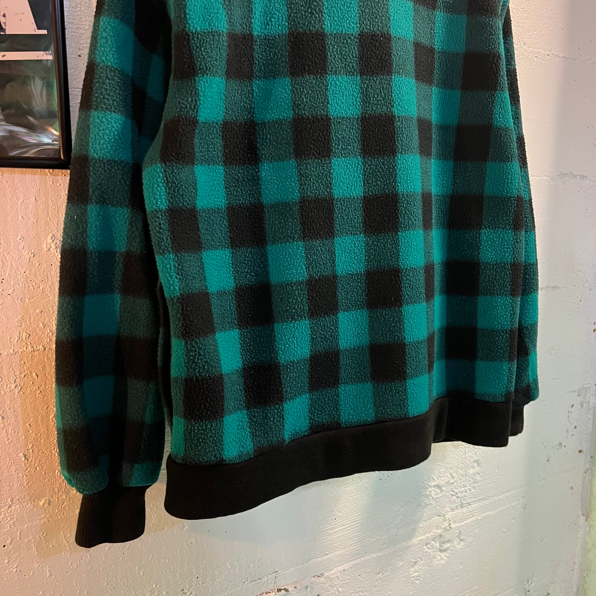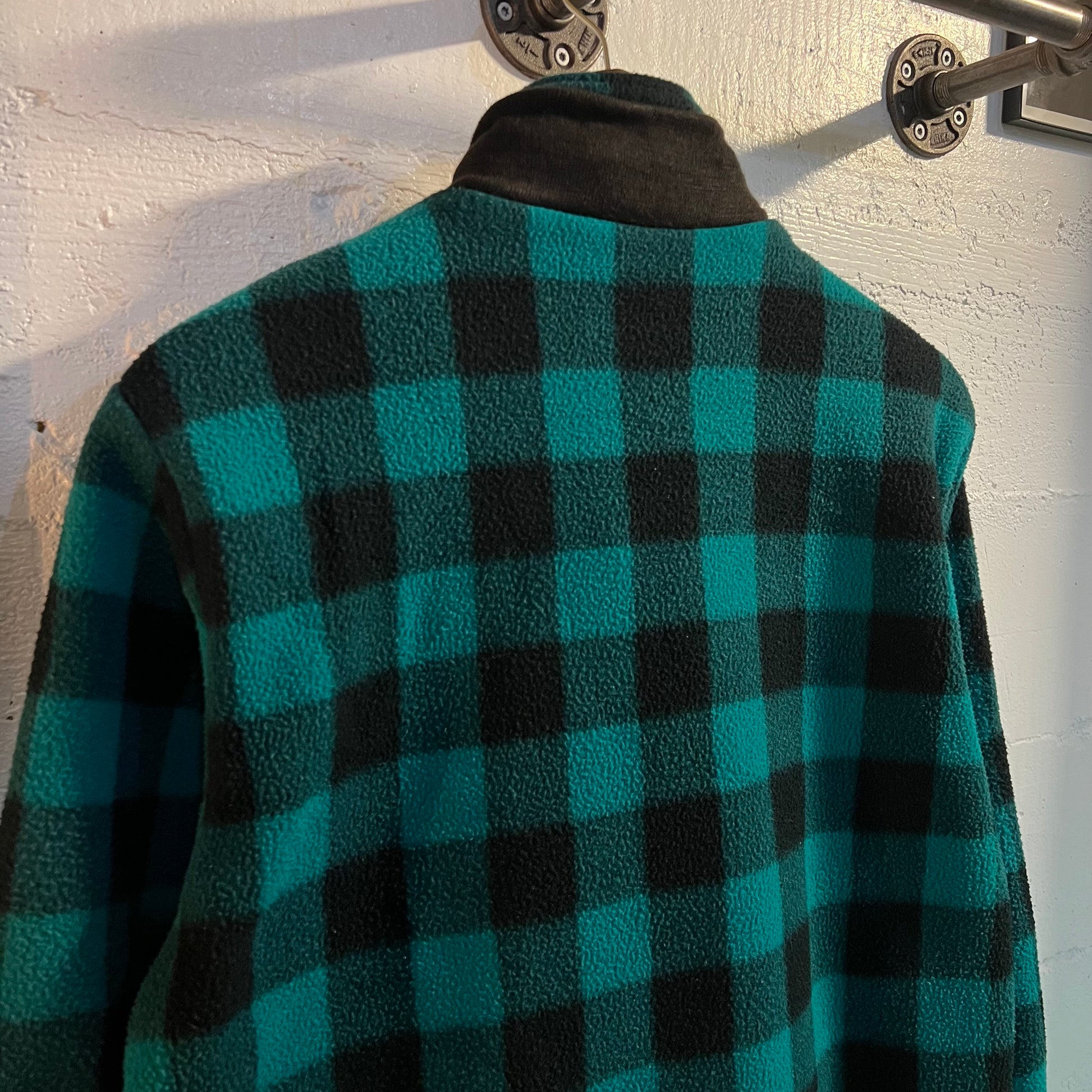 Vintage 90's Union Bay Buffalo Plaid Zip-Up Fleece Jacket - Size Large - Made In USA - Teal/Black