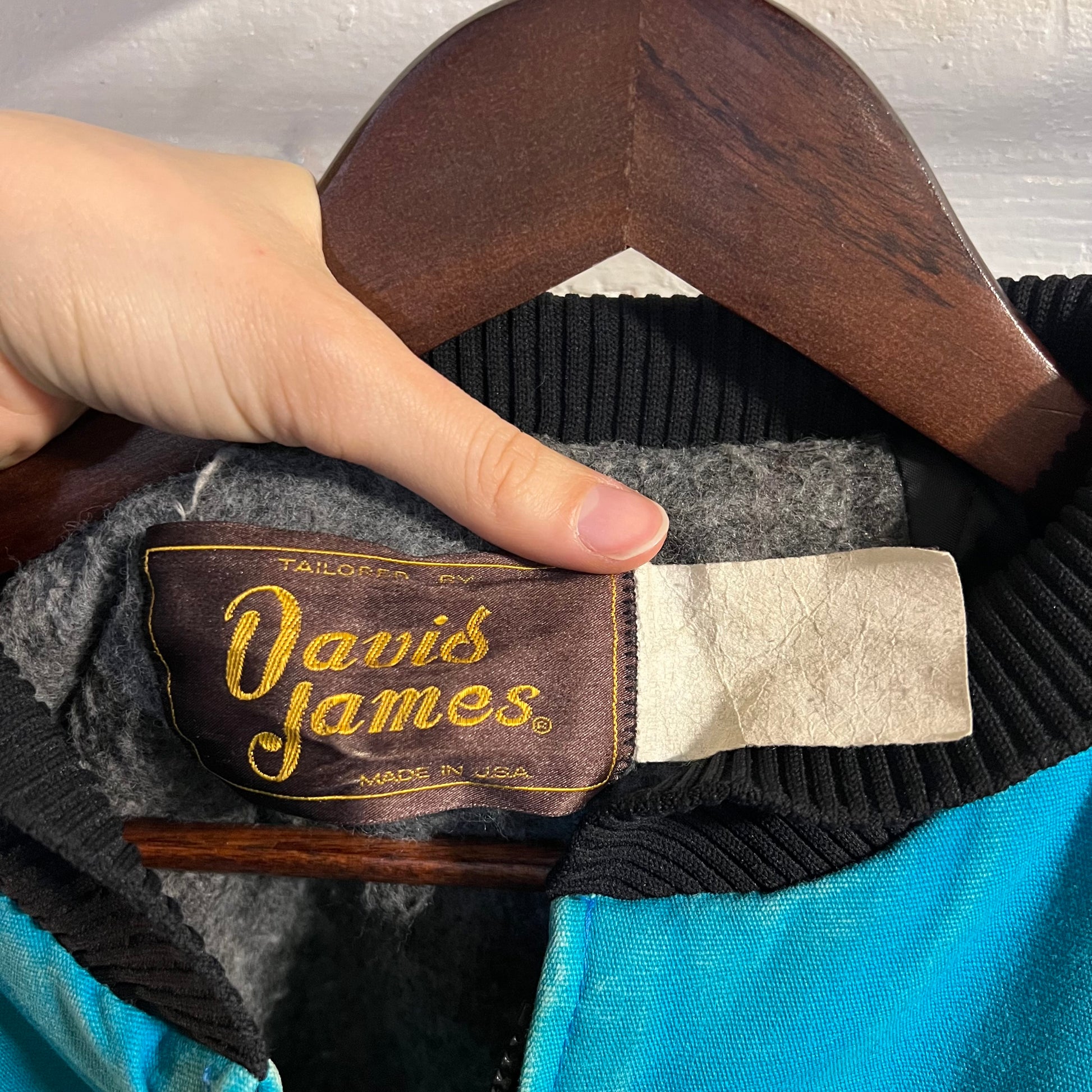 Vintage David James Aztec Blanket Lined Canvas Bomber Jacket - Size Large - Made In USA - Turquoise/Black