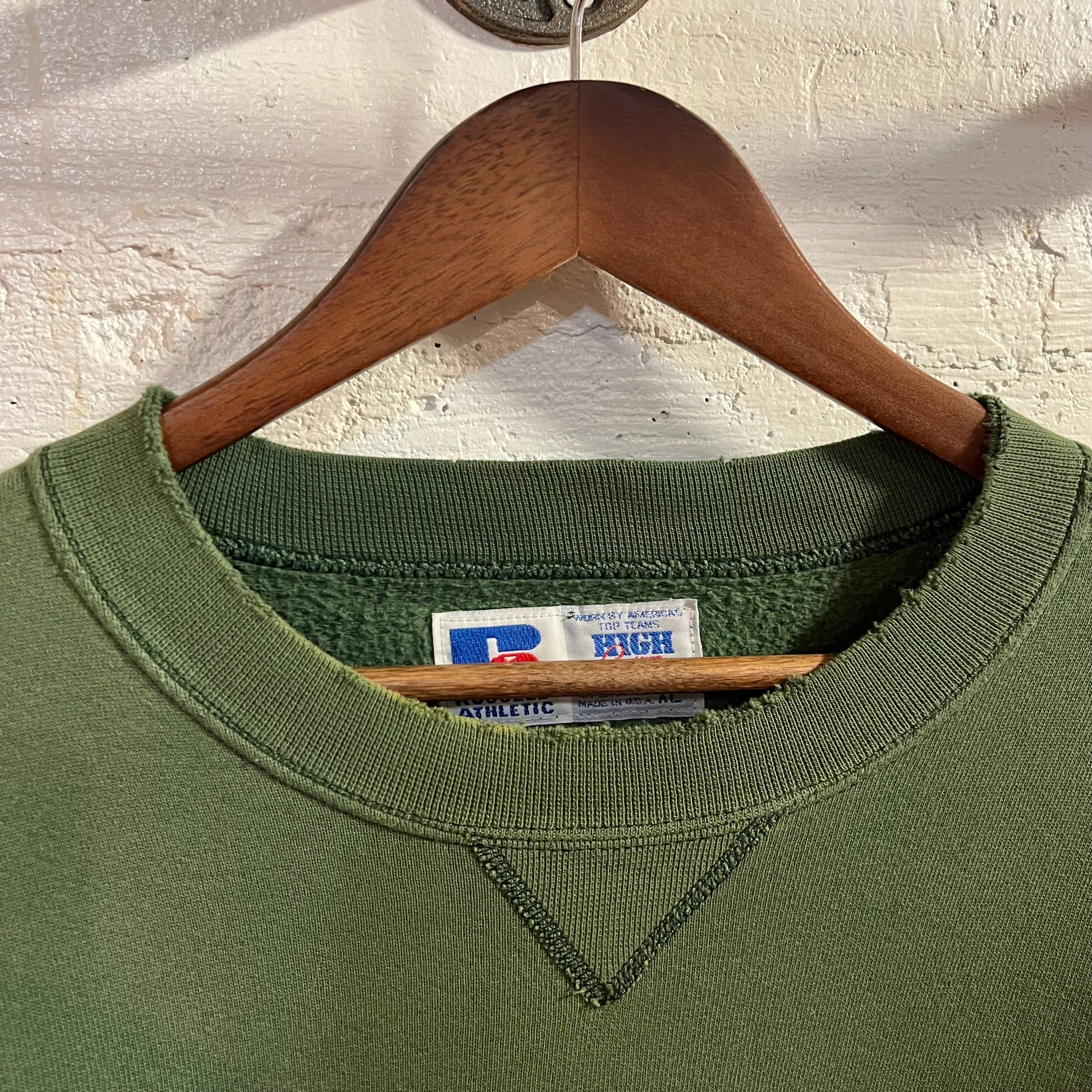 Vintage Distressed Russell Athletic High Cotton 'Illinois Wesleyan University' Collegiate Crewneck Sweatshirt - Size XL - Made In USA - Faded Green