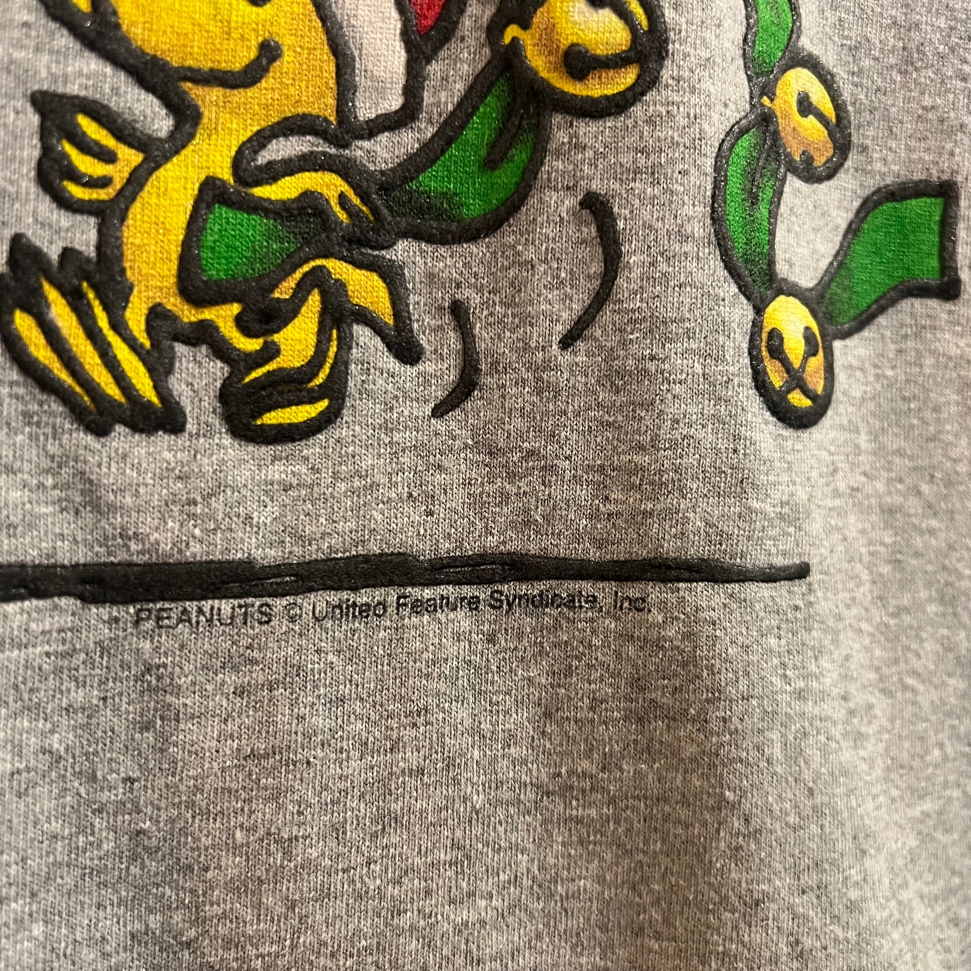 Vintage Peanuts 'Snoopy & Woodstock' Puff Print Christmas T-Shirt - Size XL - Heather Grey